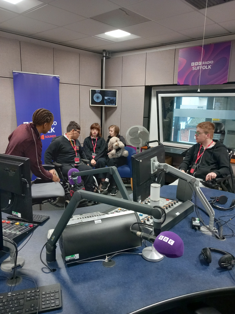 As part of our Careers programme some of our students were invited to visit BBC Radio Suffolk. They had the opportunity to learn about different roles withing the radio station and to ask questions related to careers. Our students were shown all the workplaces in the station – from the Live music room to the newsroom. They met with presenters and producers and discussed different topics, such as what challenges the producers have to overcome when creatin a radio show, what skills are needed to be a presenter, how they started their careers in the radio. Our pupils had the opportunity to engage in a practical learning and created their own recording which was broadcasted in school.