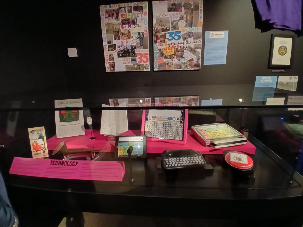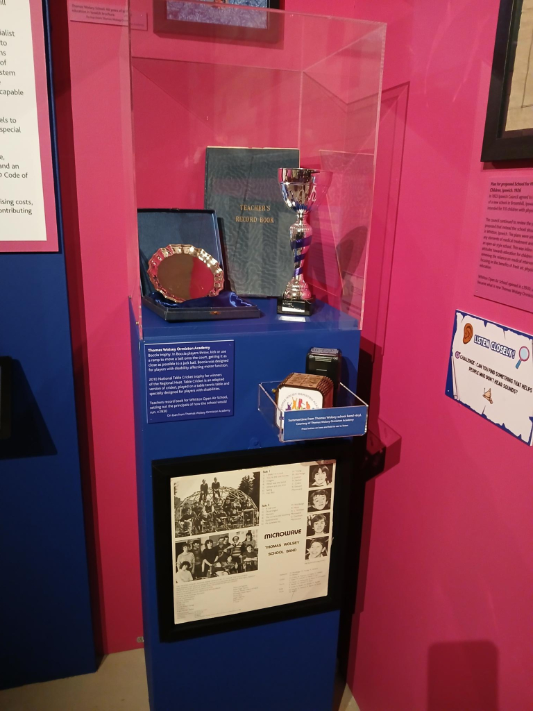 There is a cabinet with artefacts taken from the Thomas Wolsey archives and a collection of AAC devices kindly on loan from Steph Stollery who has worked as a SALT technician for many years.